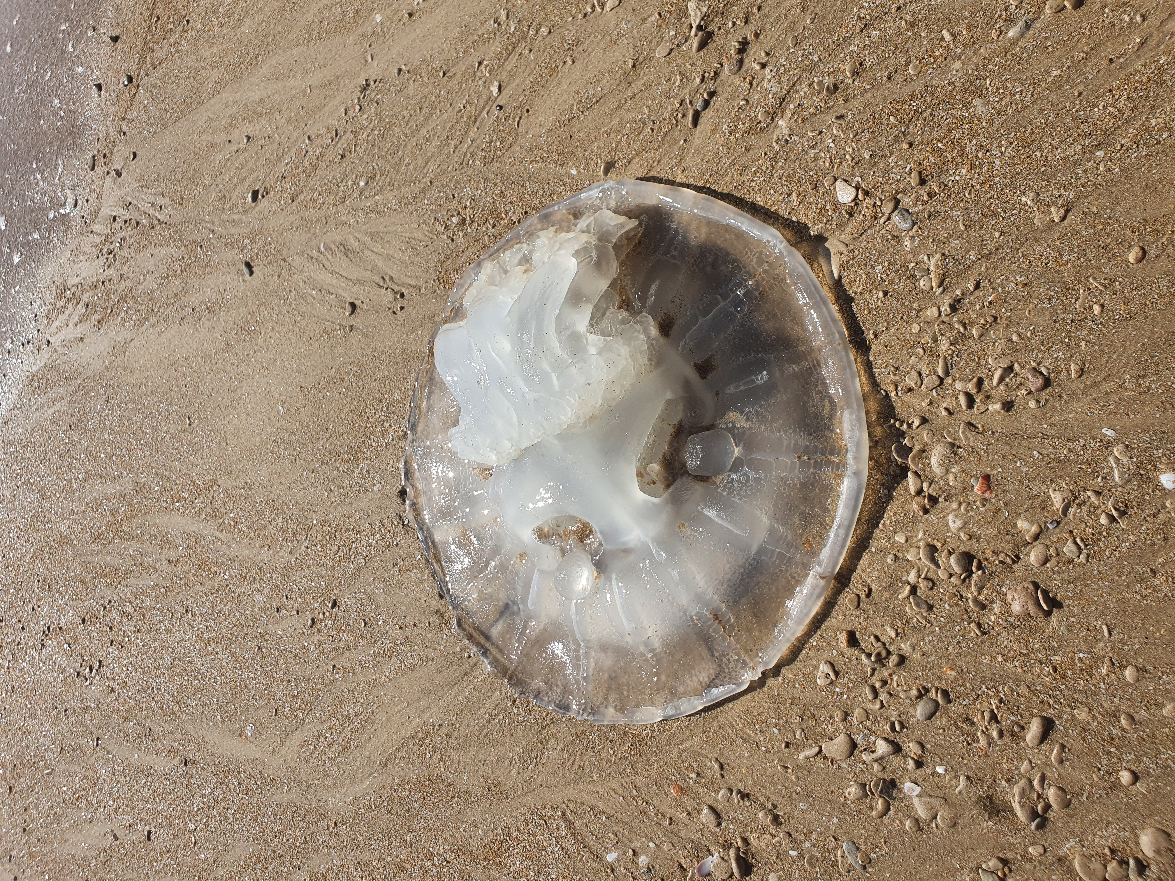 המים עם הרבה צריבות. הרבה מדוזות גם במים וגם בחוף