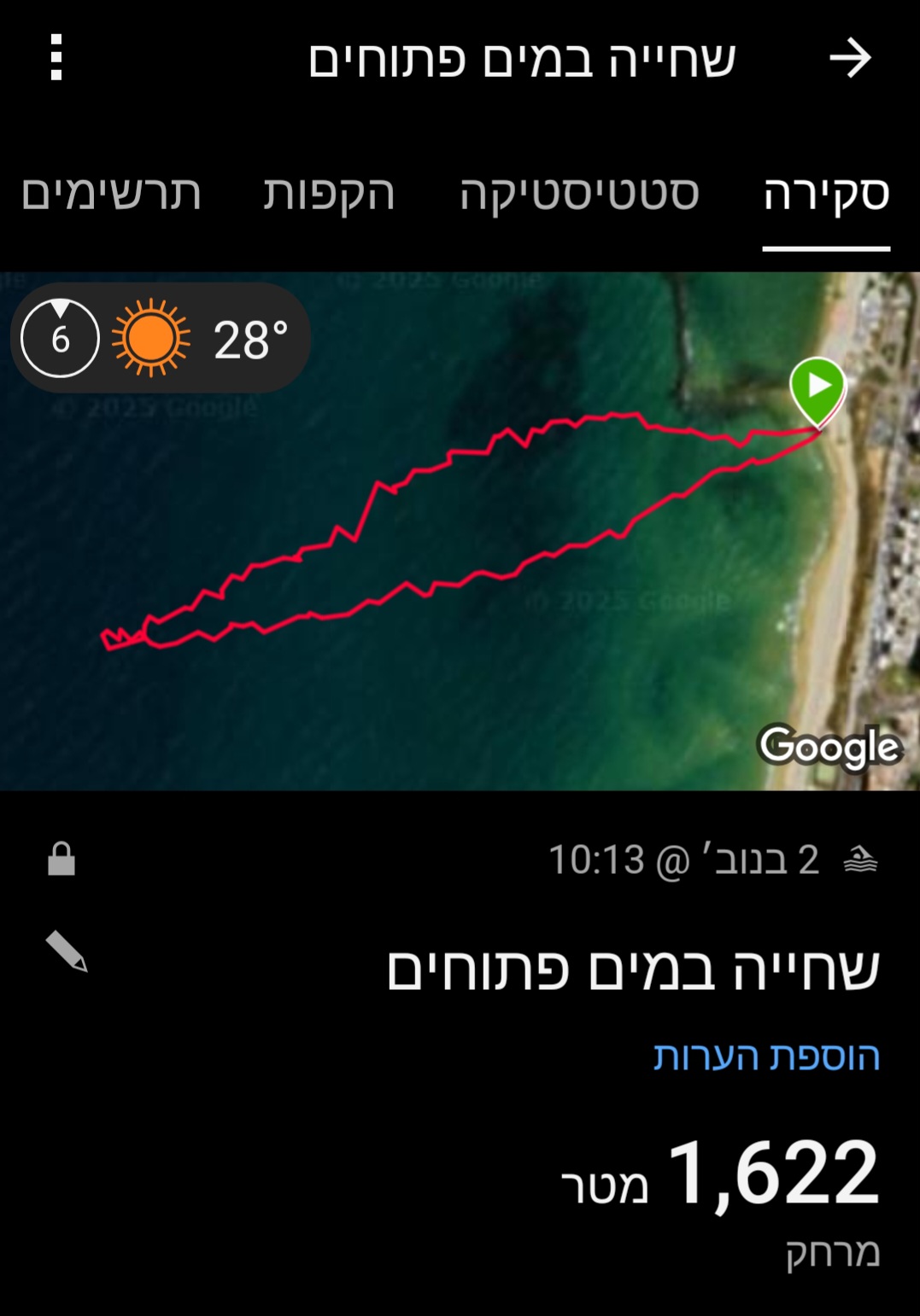מטר בים פתוח בסגנון פרפר בבת-ים בחוף הסלע מחוץ ללגונה