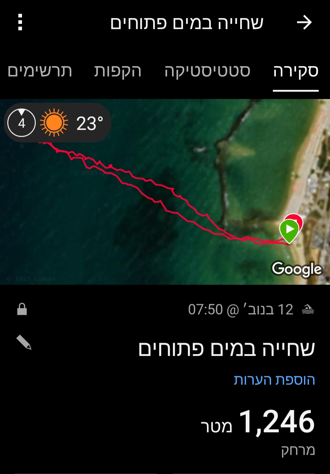 מטר בים פתוח בסגנון פרפר בבת-ים
